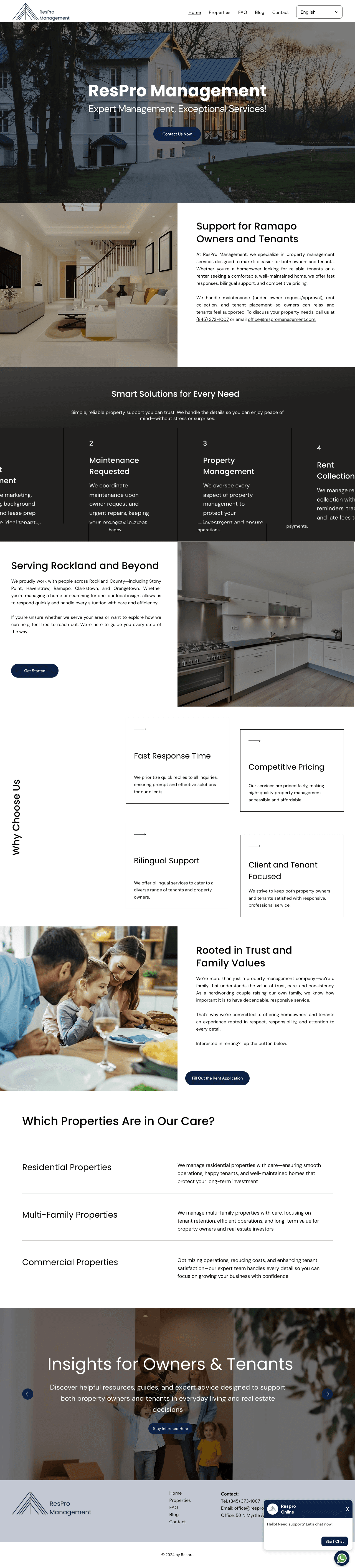 Responsive website design for ResPro Management, a property management company based in New York serving both owners and tenants across Rockland County.